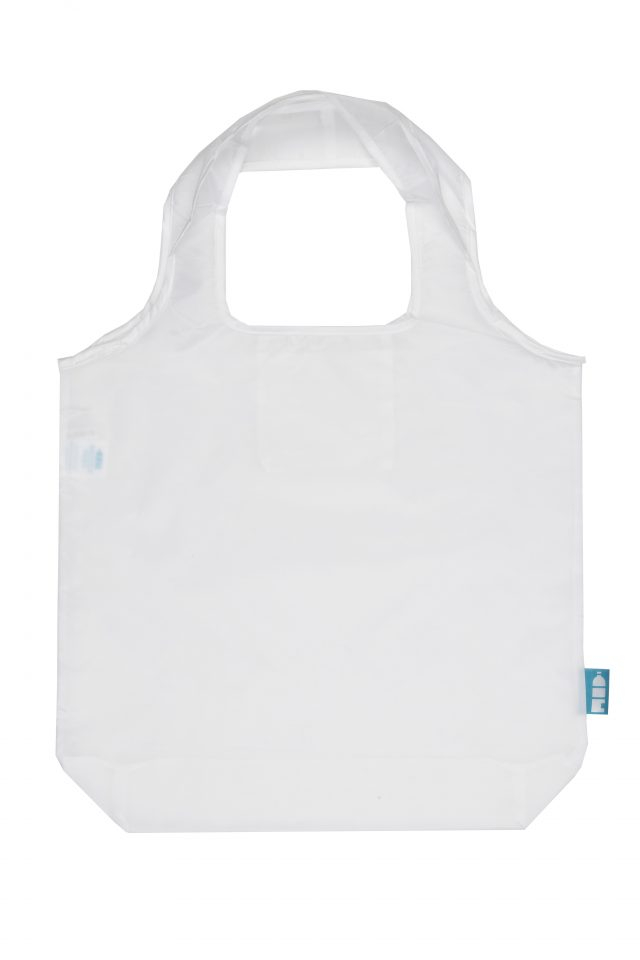 Handige boodschappentas met vastgestikt opvouwzakje in de tas. Deze tas, gemaakt van 3 gerecyclede flessen, past gemakkelijk in elke handtas, rugzak of jas. Met dit tasje in de auto of fietstas is men altijd klaar voor een onverwacht bezoek aan de supermarkt of winkel. Wie heeft er nu nog een plastic draagtas nodig voor eenmalig gebruik?
