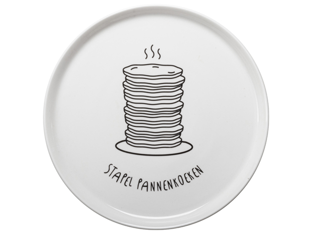 Zet de stroop en poedersuiker maar klaar want het is tijd voor pannenkoeken! Iedereen weet meteen dat het pannenkoekendag is als dit toffe bord tevoorschijn komt. Begin dus maar vast met bakken want je kunt op dit grote bord een hele stapel kwijt. Het witte aardewerk bord heeft een opstaande rand zodat de pannenkoeken goed blijven liggen. Door zijn grote formaat ook heel geschikt voor pizza?s.