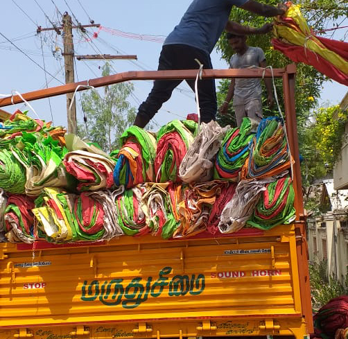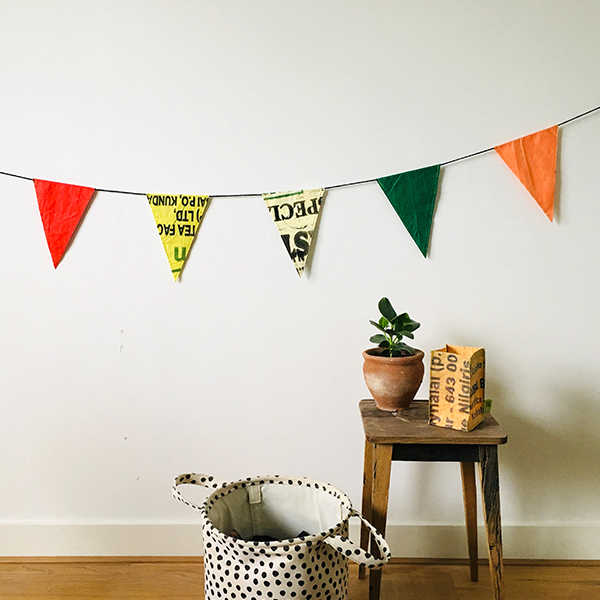 De vlaggen zijn gemaakt van gerecyclede theezakken uit de theepluk in India.