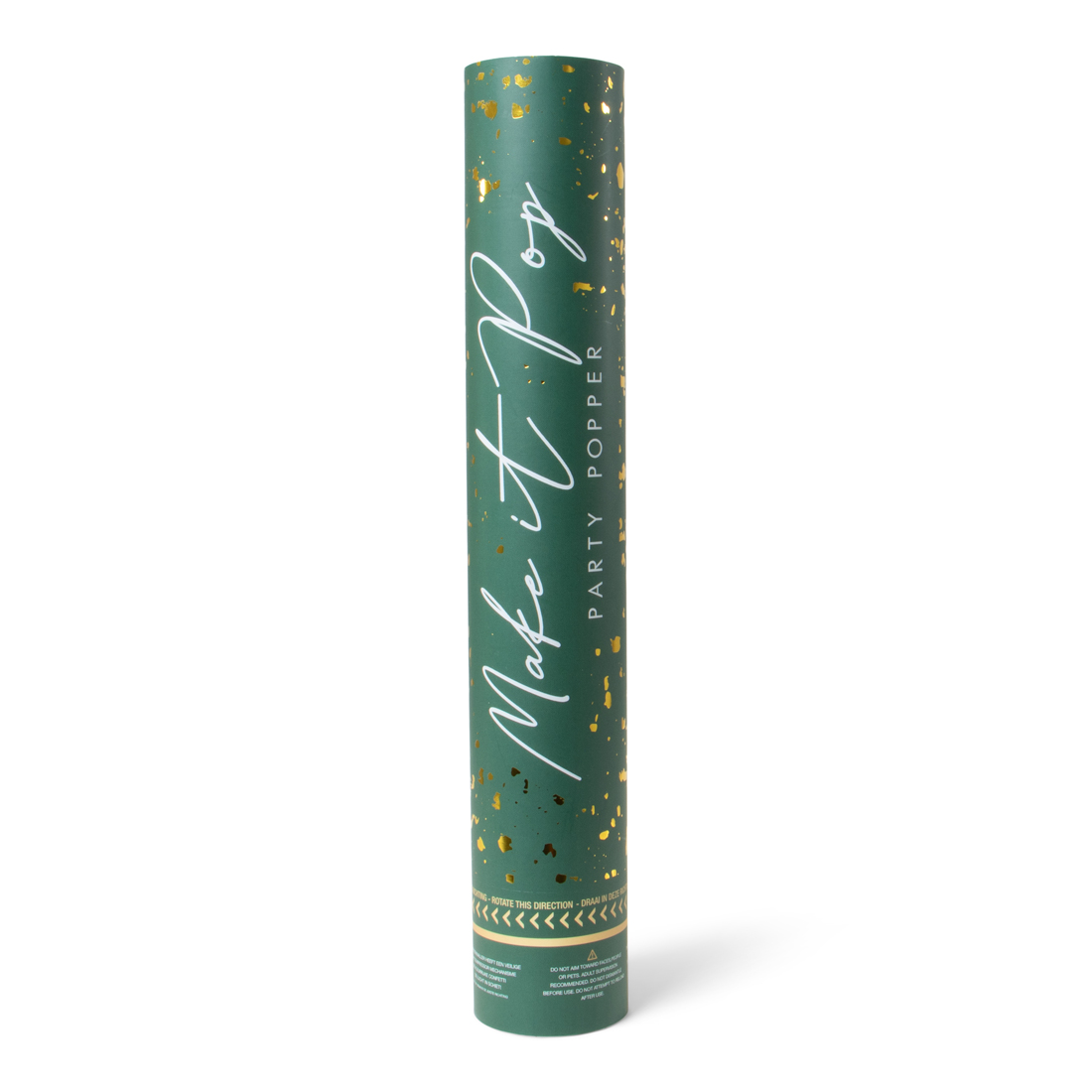 Bij elke feestelijke aangelegenheid mag deze Party Popper XL natuurlijk niet ontbreken. Door aan de onderkant te draaien, wordt de springveer aan de binnenkant geactiveerd. Hierdoor worden goud- en zilverkleurige papieren confetti afgeschoten.