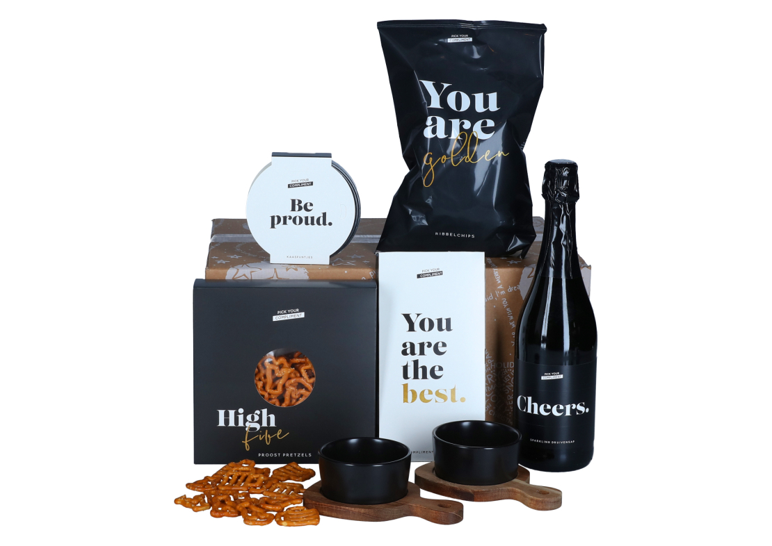 Het thema “Pick Your Compliment” draait helemaal om dankbaarheid en positiviteit. Achter elke verpakking schuilt een lieve boodschap of verrassend compliment – kleine woorden van waardering die grote glimlachen oproepen. Een origineel en hartverwarmend cadeau voor collega’s, vrienden of familie.