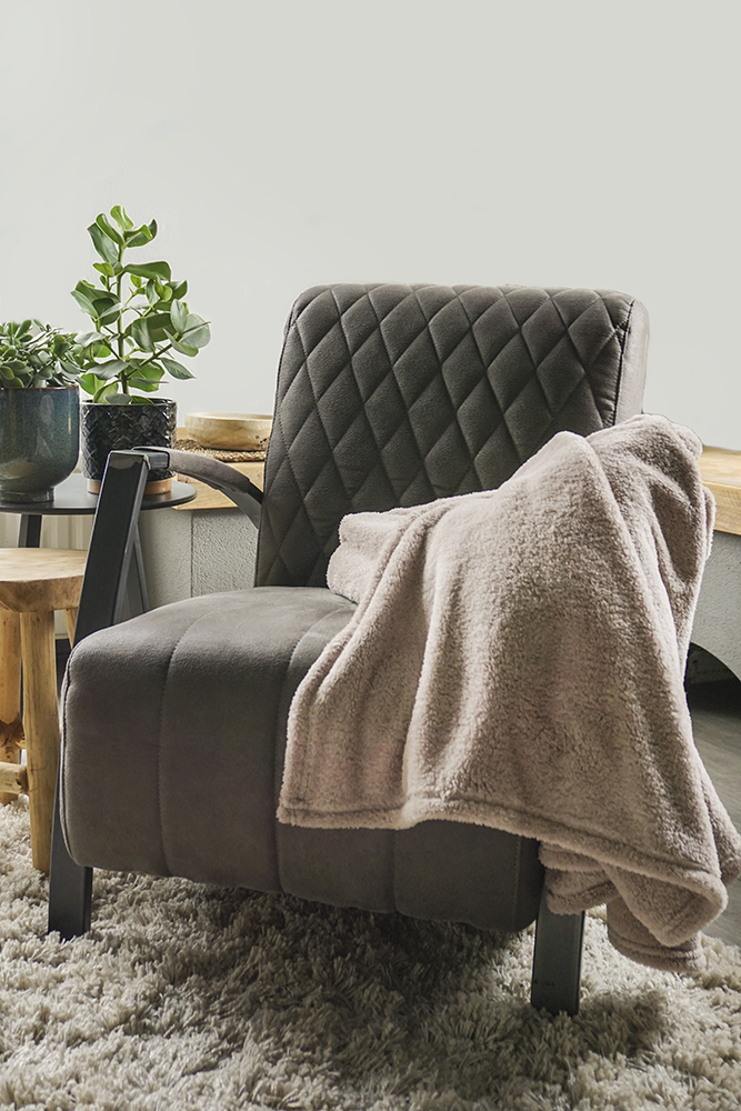 Super zacht en warm plaid, heerlijk voor koude dagen op de bank.  Dit luxe hoogpolige taupe plaid is van een zware kwaliteit en duurzaam geproduceerd volgens strenge Oeko-tex richtlijnen.