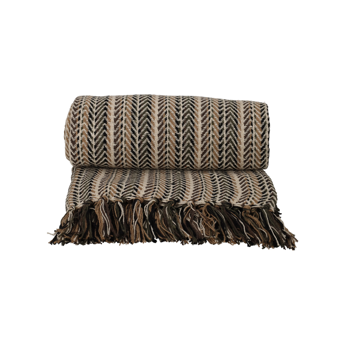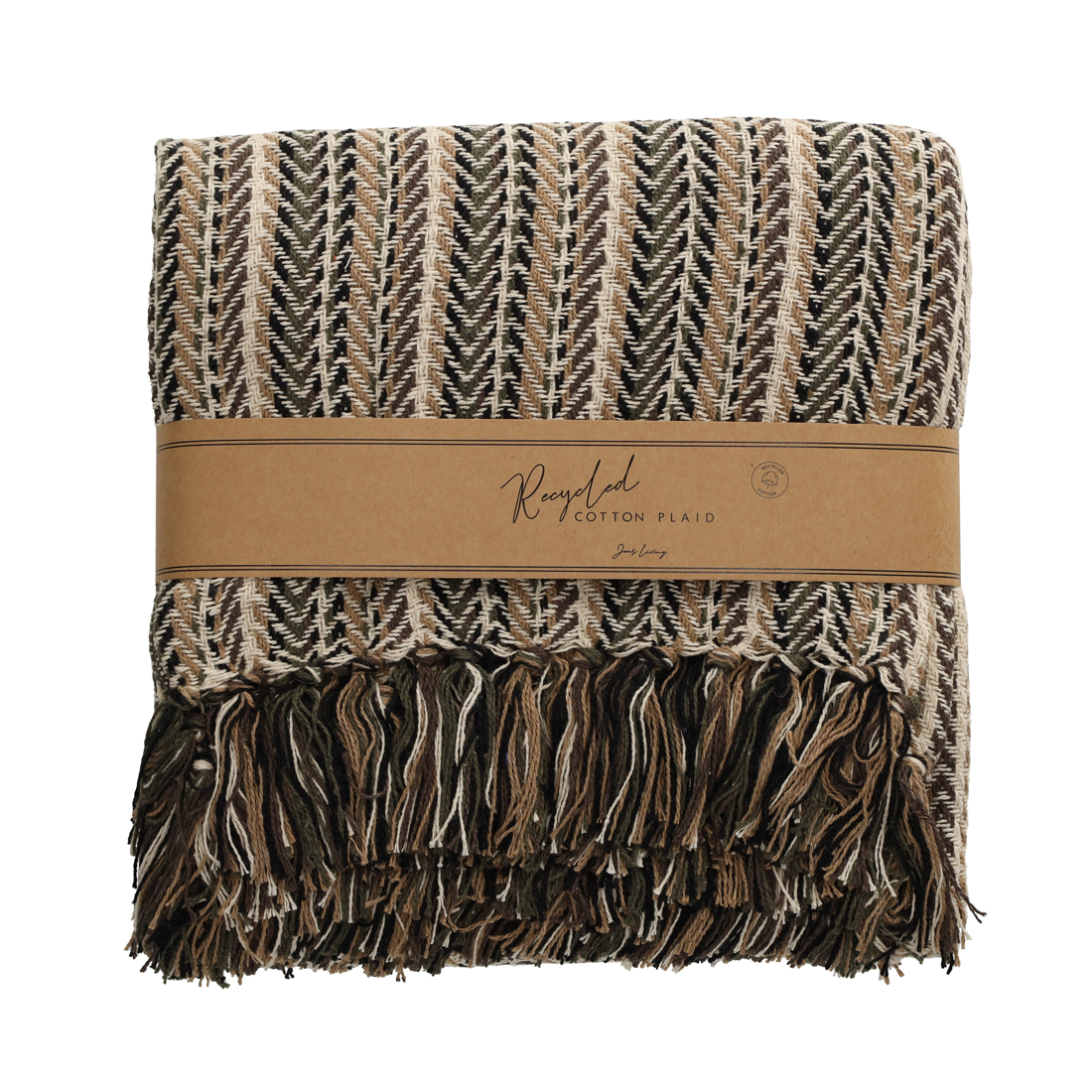 Dit plaid uit India is gemaakt van gerecycled katoen en heeft daardoor een duurzaam karakter. Met het luxe patroon en de trendy kwastjes is dit plaid een leuke verschijning in je interieur. Leg het plaid uitgevouwen op de bank of op het bed of gebruik dit kleed om heerlijk onder te kruipen tijdens de koude winterdagen.