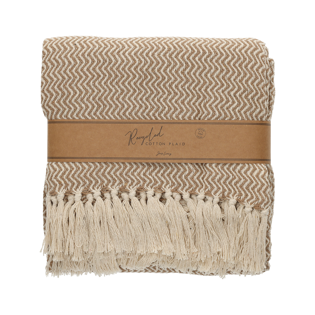Dit plaid uit India is gemaakt van gerecycled katoen en heeft daardoor een duurzaam karakter. Met het originele patroon en de trendy kwastjes is dit plaid een leuke verschijning in je interieur. Leg het plaid uitgevouwen op de bank of op het bed of gebruik dit kleed om heerlijk onder te kruipen tijdens de koude winterdagen.