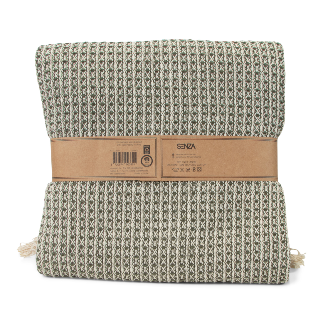 Dit plaid uit India is gemaakt van gerecycled katoen en heeft daardoor een duurzaam karakter. Met het wafelpatroon en de trendy kwastjes is dit plaid een leuke verschijning in je interieur. Leg het plaid uitgevouwen op de bank of op het bed of gebruik dit kleed om heerlijk onder te kruipen tijdens de koude winterdagen.