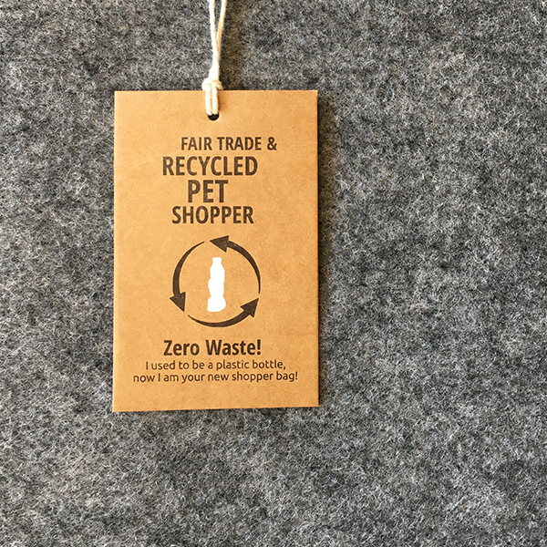 I used to be a plastic bottle, now I am your new shoulder bag! Deze stijlvolle en handzame tas is gemaakt van circa 9 gerecyclede PET flessen. Een ware eyecatcher die gebruikt kan worden als handtas of boodschappentas. De tas heeft de uitstraling en zachtheid van vilt. Door de lange hengsels draag je de tas comfortabel over je schouder. De tas wordt geleverd met de tekst ‘Less is the new More’.