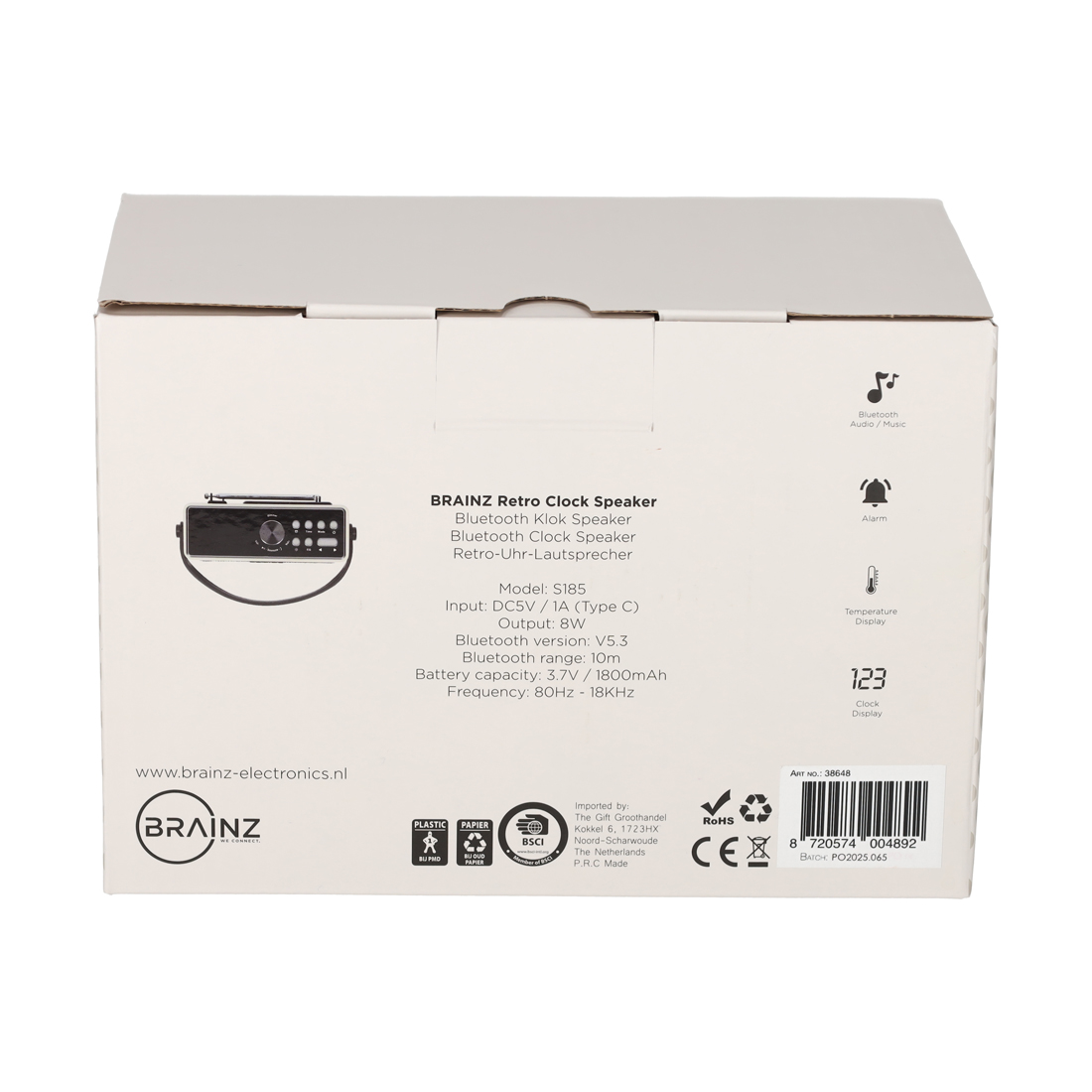 Deze wekker speaker combineert een stoere retro uitstraling met moderne functionaliteit. Met de Bluetooth-functie kun je eenvoudig je favoriete muziek afspelen, terwijl het ingebouwde alarm je op tijd wakker maakt. Het temperatuurdisplay toont de actuele kamertemperatuur, en het klokdisplay geeft je altijd de tijd in één oogopslag. Deze veelzijdige wekker is een stijlvolle en praktische toevoeging aan je slaapkamer of bureau, met de perfecte mix van een vintage design en handige functies.