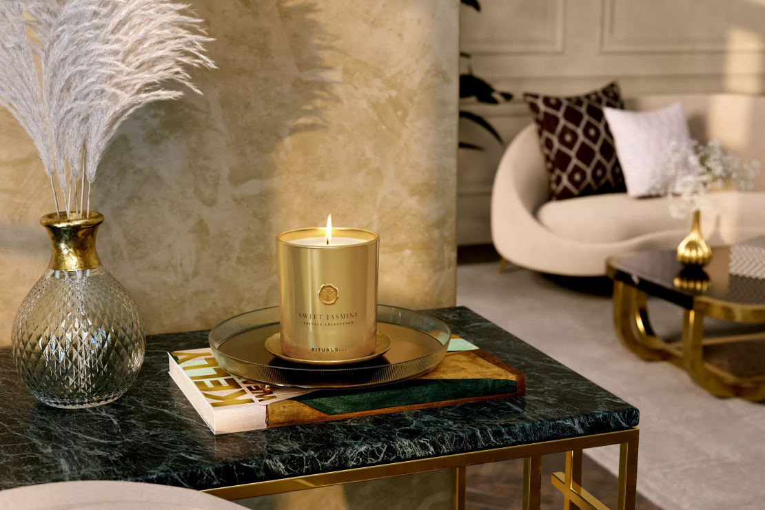 Vul je huis met een heerlijk romantische mix van bloesems, kruidig fruit en warme houtnoten met deze luxe geurkaars.