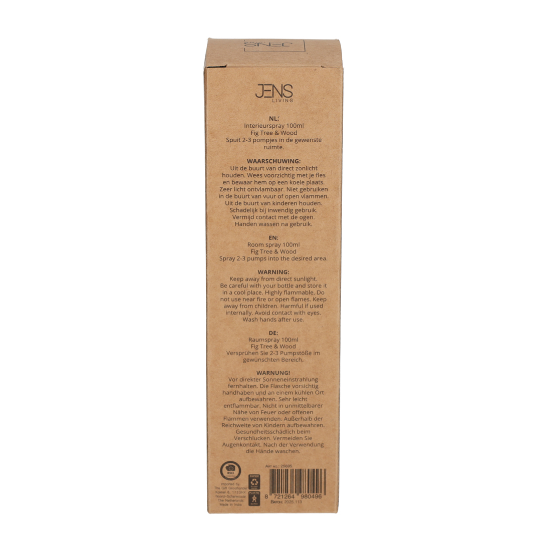 Vul je huis met de warme, aardse geur van Fig Tree & Wood met deze luxe roomspray. De verfijnde geurcombinatie van vijgenboom en hout creëert een comfortabele, uitnodigende sfeer in elke ruimte. De roomspray is verpakt in een amberbruine glazen flacon, die een tijdloze uitstraling heeft, en is afgewerkt met een elegante gouden dop. Deze stijlvolle flacon is niet alleen een geurige toevoeging aan je interieur, maar ook een mooie decoratie die perfect past in een sfeervol huis.