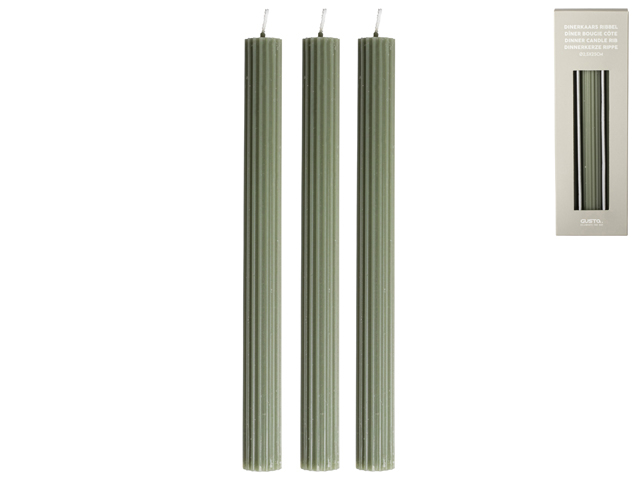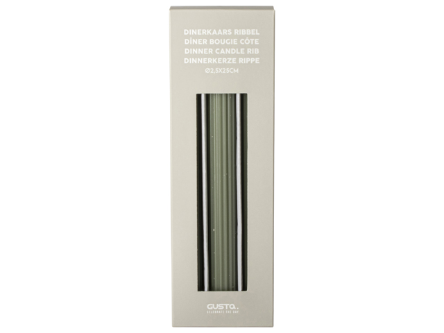 Deze stijlvolle dinerkaarsen staan prachtig in jouw kandelaar! Ze hebben een stoer ribbel patroon en een zachte groene kleur. Ook erg mooi om ze te gebruiken bij een diner, zo maak je je tafel helemaal in stijl af.