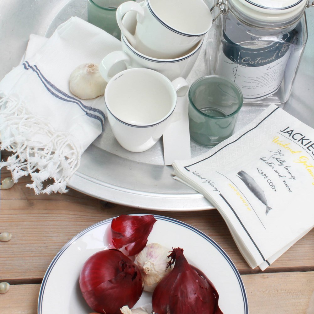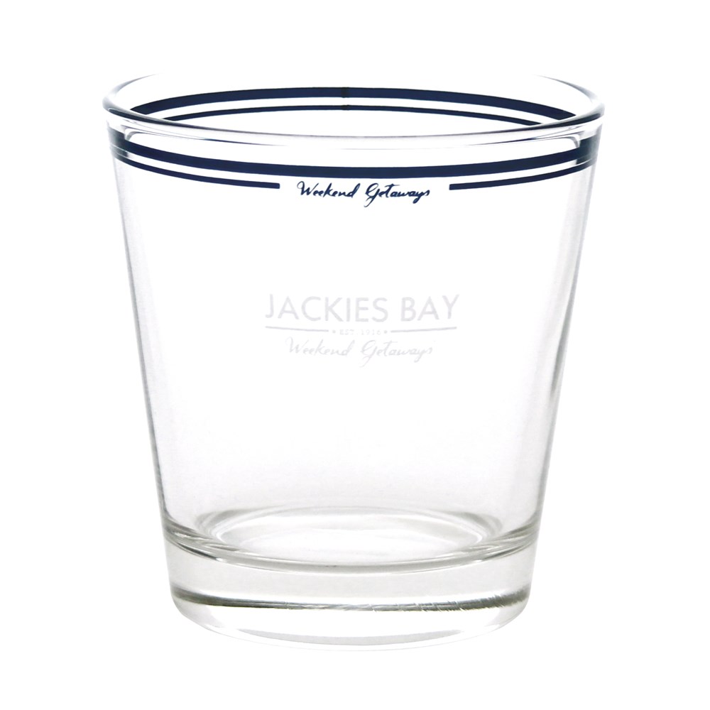 Elegant, zelfverzekerd en tijdloos, dat is Jackies Bay. Laat je meenemen naar Cape Cod met haar rijke tradities en geniet van het rustige karakter. Dit sapglas van Jackies Bay met blauw accent heeft een inhoud van 375 ml. Het glas is vaatwasmachinebestendig.