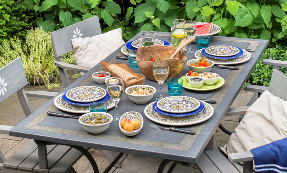 Een kleurrijk en sfeervol keramisch tafelservies. Met deze producten creeer je een mediterrane sfeer. Ze gebruiken uitsluitend witte keramiek waardoor alle producten geschikt zijn voor dagelijks gebruik en vaatwas- , oven - en magnetronbestendig zijn.