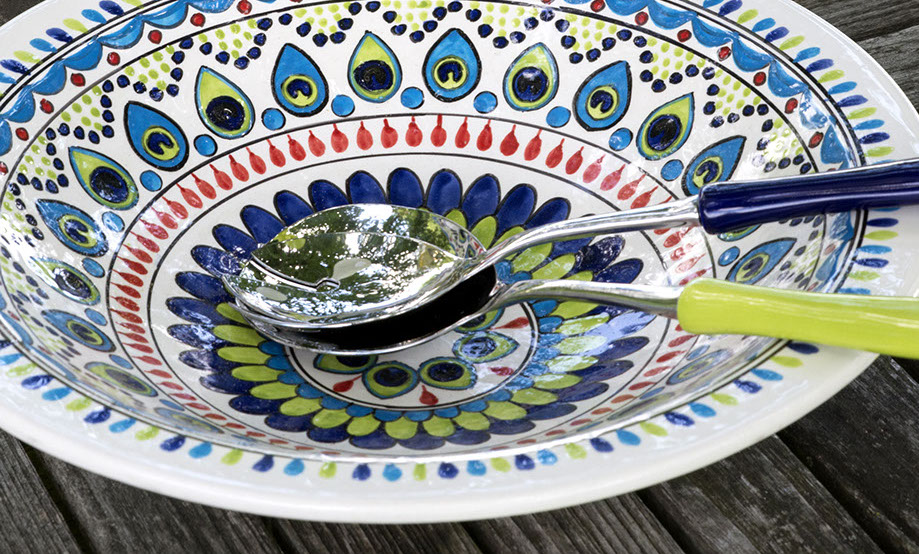 Een kleurrijk en sfeervol keramisch tafelservies. Met deze producten creer je een mediterrane sfeer. Ze gebruiken uitsluitend witte keramiek waardoor alle producten geschikt zijn voor dagelijks gebruik en vaatwas- , oven - en magnetronbestendig zijn.