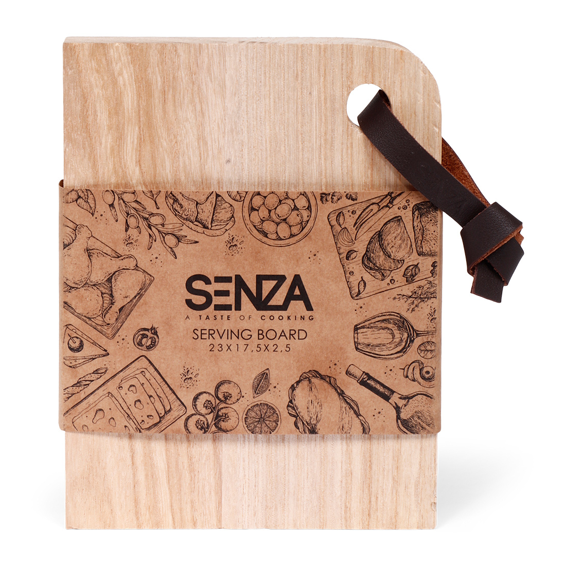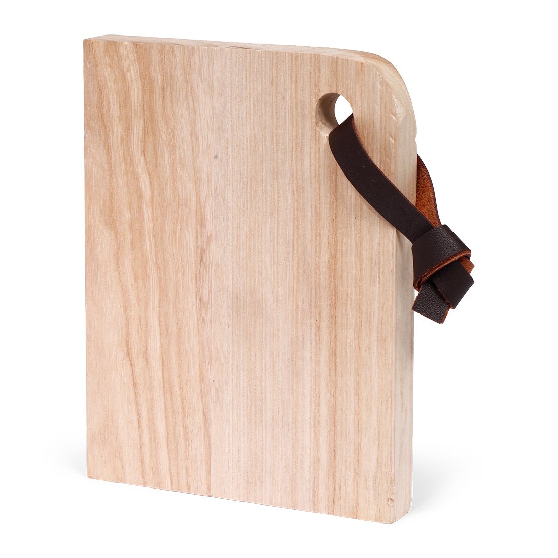 Met dit serveerplankje heb je een leuke basis om je borrelhapjes op tafel te zetten. De plank is gemaakt van pijnboomhout en heeft dankzij het PU leren bandje een stoere look. Middels het PU leren bandje is het ook mogelijk om deze plank op te hangen.