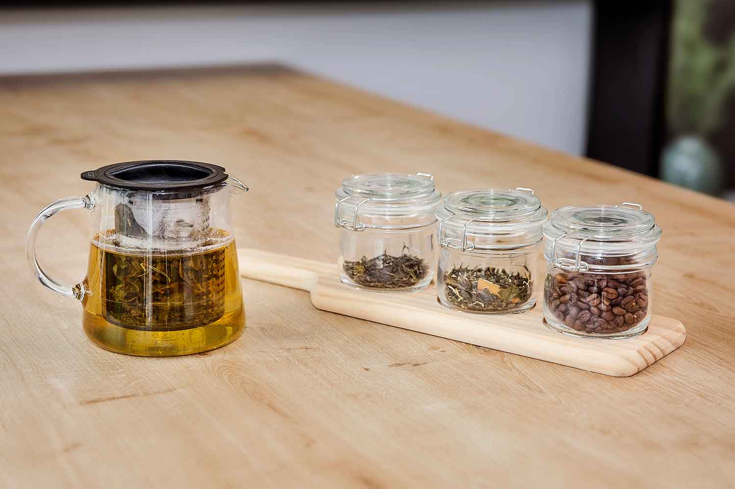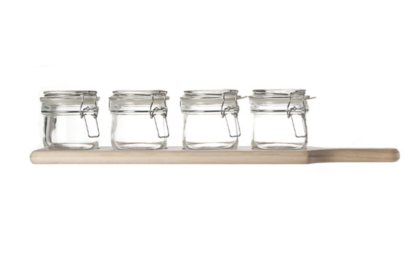 Serveerplank met 4 glazen
