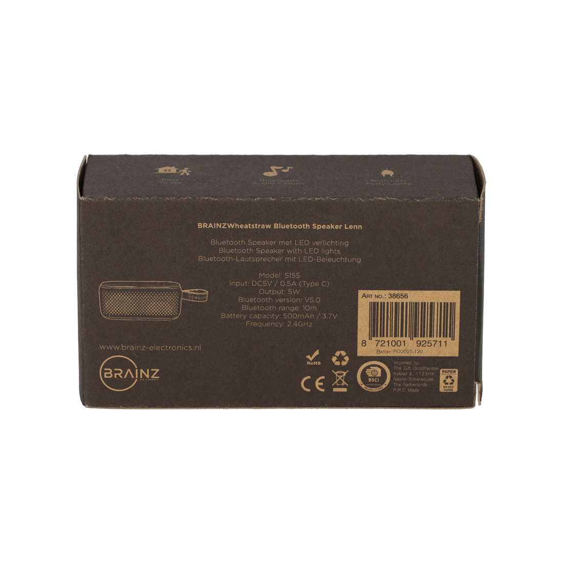 Speaker Lenn is de ideale speaker voor ieder moment van de dag. De speaker is gemaakt van Tarwestro wat deze een duurzaam karakter geeft. Daarnaast bevat de speaker subtiele LED verlichting aan de bovenkant en een handig koord om de speaker aan vast te houden. De compacte luidspreker is hierdoor makkelijk mee te nemen naar het park of strand. Laad de speaker op doormiddel van de bijgeleverde USB-C kabel, connect de speaker en luister je favoriete muziek, waar dan ook.
