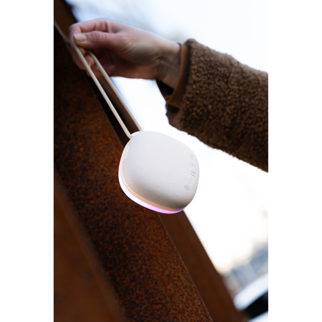 Deze compacte speaker is de perfecte metgezel voor onderweg. Dankzij het handige formaat en de draagriem neem je hem moeiteloos mee. De Bluetooth-functie maakt draadloos verbinden met je apparaten eenvoudig, zodat je overal van je favoriete muziek kunt genieten. De speaker bevat LED-licht, wat zorgt voor een extra sfeervolle ambiance. Daarnaast heeft de speaker de waterdichte IPX4-classificatie, wat betekent dat de speaker bestand is tegen spatwater, ideaal voor gebruik in de regen of bij het zwembad. Geniet van krachtig geluid, waar je ook bent! De speaker kan circa 2 tot 3 uur muziek afspelen, wanneer deze volledig is opgeladen.