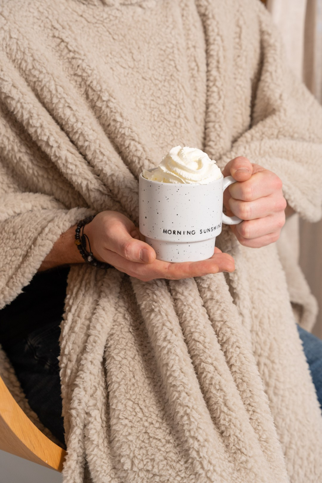 De "Morning Sunshine" mok is van porselein en heeft een groot rond oor. De mok is geschikt voor zowel koude als warme dranken en kan ook opgewarmd worden in de magnetron.