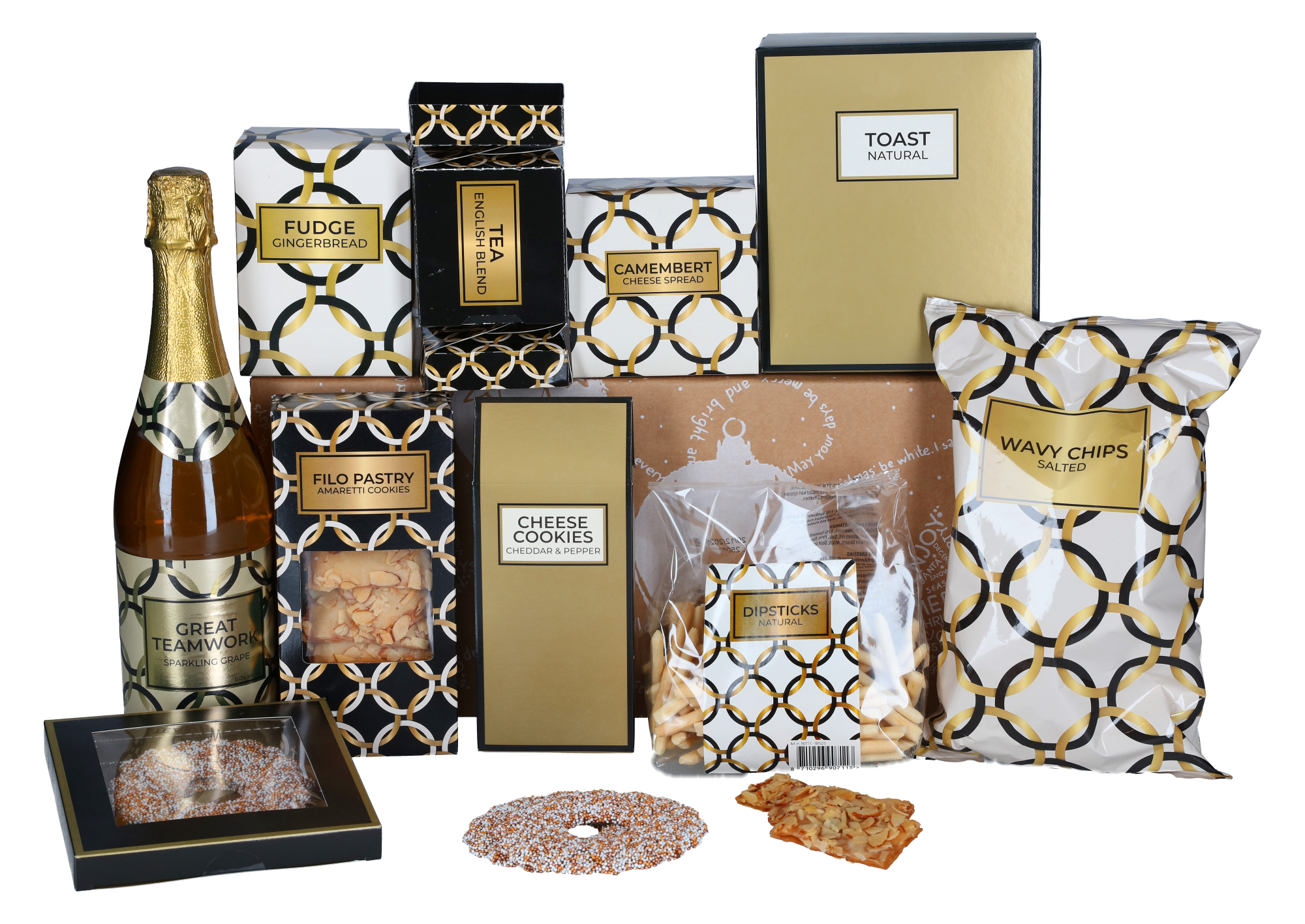 Met Style de Luxe haal je pure elegantie in huis. Dit foodpakket is gevuld met zorgvuldig geselecteerde lekkernijen die niet alleen heerlijk smaken, maar ook zijn verpakt in stijlvolle designs met gouden accenten en subtiele patronen. De samenstelling ademt klasse en maakt elk moment van genieten extra bijzonder.