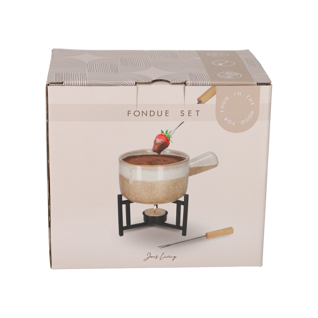 Maak elk moment extra gezellig met deze stijlvolle fondueset! Smelt heerlijke kaas of chocolade in de pan en geniet samen van een smakelijke fondue. De set bevat een fonduepan van 500 ml, twee vorkjes en een onderstel met plaats voor één theelichtje.