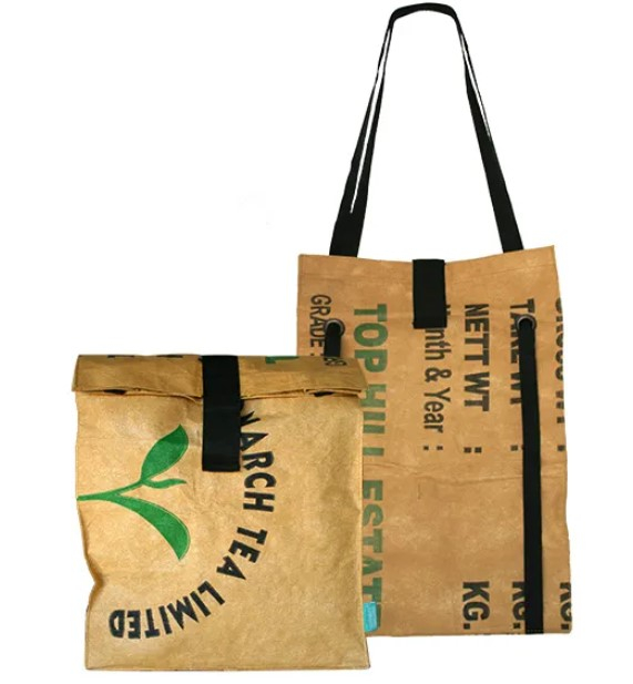 Teabags worden in India gebruikt voor het transport van thee van de theeplantages naar fabrieken, hotels en restaurants. Na gebruik worden de zakken gezien als afval en worden gewoonlijk daarom weggegooid. Dankzij SuperWaste krijgen deze zakken een tweede leven. Het materiaal is gerecycled 80 GSM non woven polypropyleen. Elk product heeft een unieke print, afhankelijk van de theeplantage waar de Teabags vandaan komen.