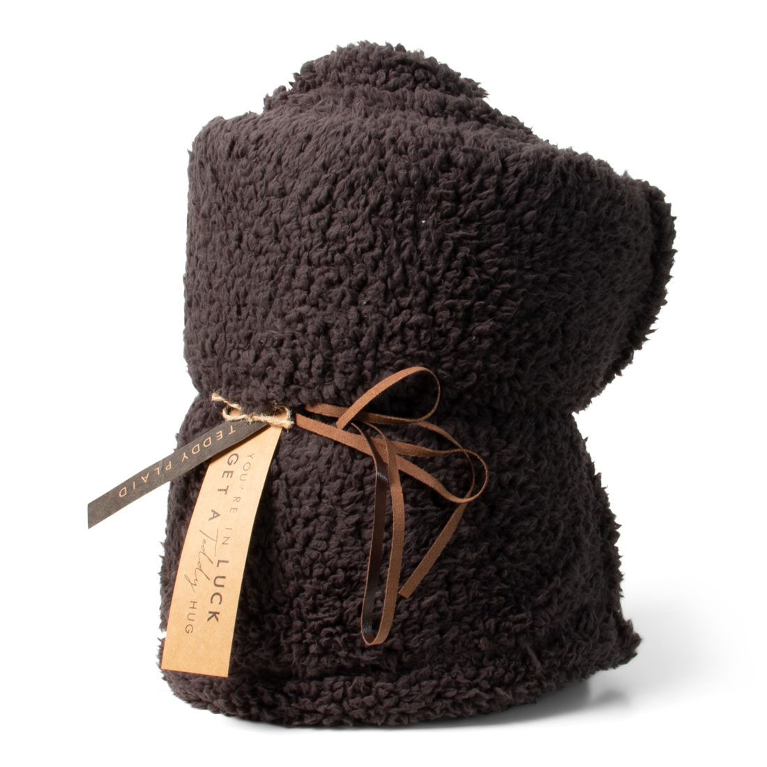 Kruip lekker weg onder een teddy plaid terwijl je je favoriete serie kijkt. Dit winterse kleed is gemaakt van teddy fleece en voelt daardoor heerlijk zacht aan. Je kunt het plaid vastmaken met de luxe vegan lederen lus knoop zodat deze altijd goed om je heen blijft zitten. Met deze warme deken kan de thermostaat wel een standje lager, dus laat de winter maar komen!