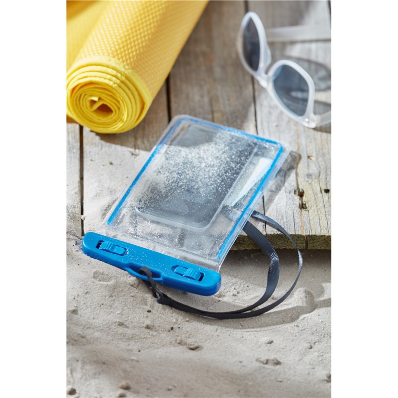 Telefoontasje: spatwaterdicht, met veiligheidssluiting, met rondom glow-in-the-dark-strips, zwart omhangkoord (ca. 43 cm.) - ideaal om telefoon, portemonnee en andere waardevolle spullen in op te bergen op het strand of bij het zwembad.