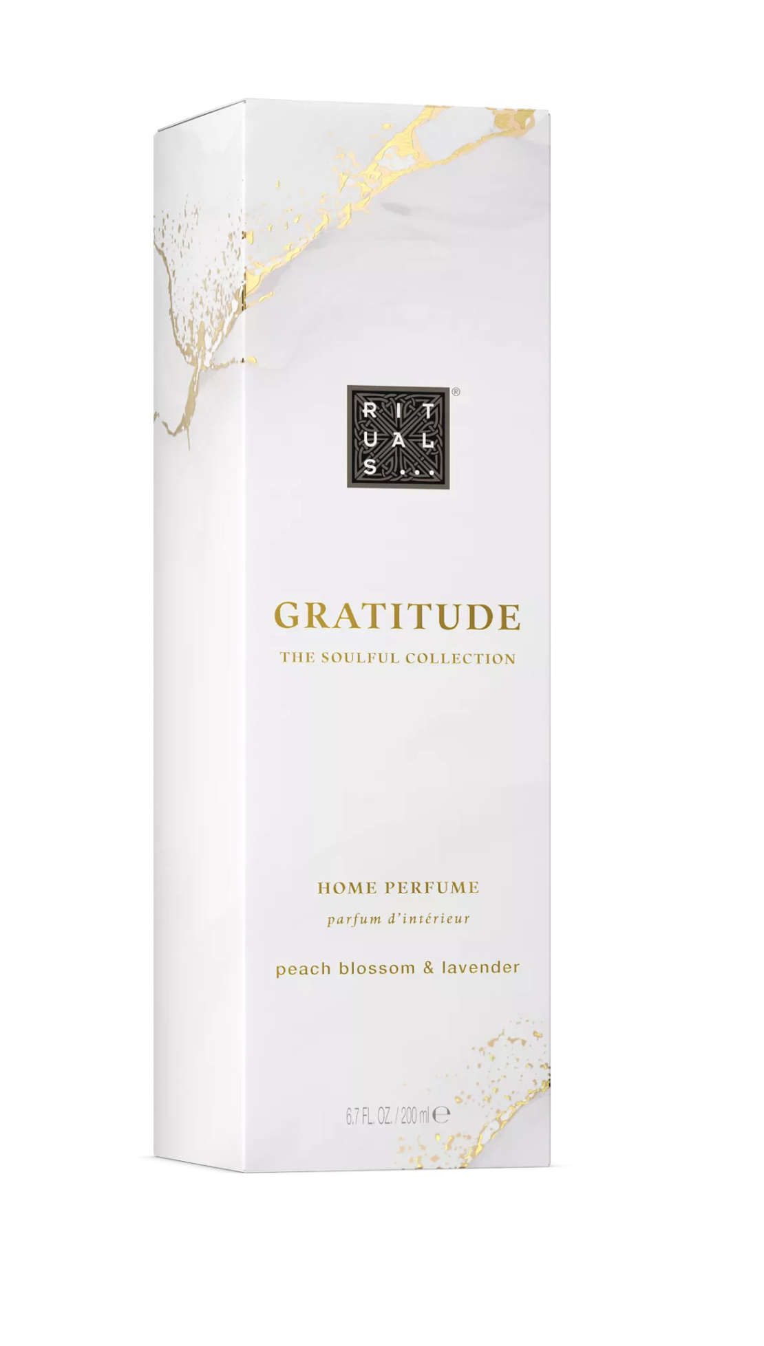 Vul elke ruimte direct met de warme en rustgevende geur van perzik, lavendel en vanille van ons heerlijke nieuwe Gratitude huisparfum uit The Soulful Collection.
