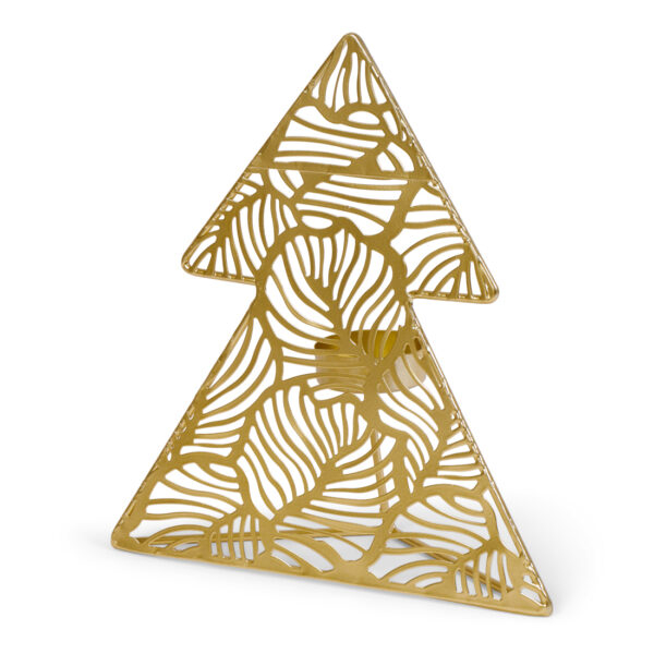 Met deze vrolijke dennenboomvormige waxinelichthouder breng je pas echt warmte en sfeer in huis. De houder is geschikt voor 1 waxinelichtje en is kenmerkend door het speelse patroon aan de voorzijde.
