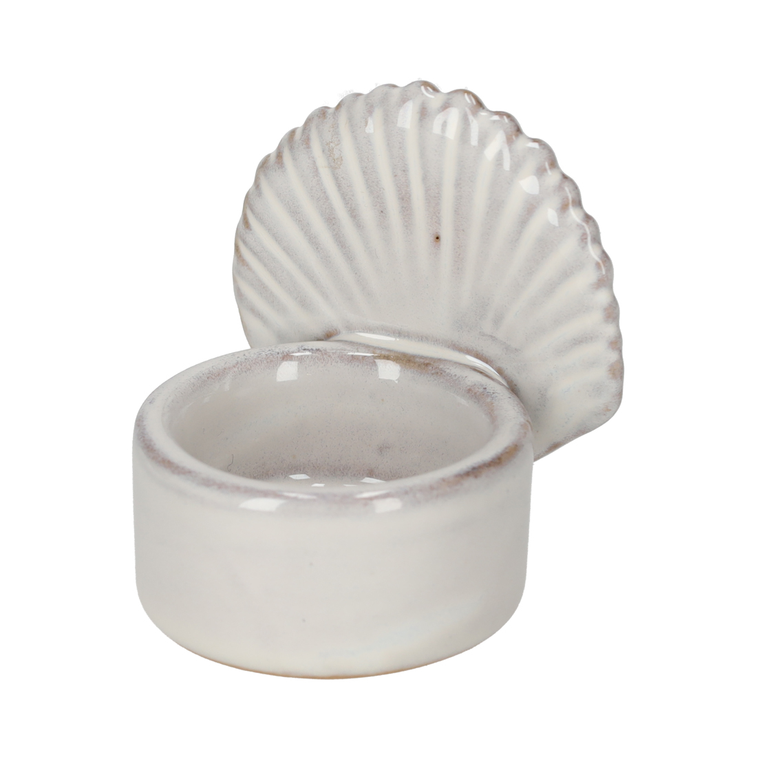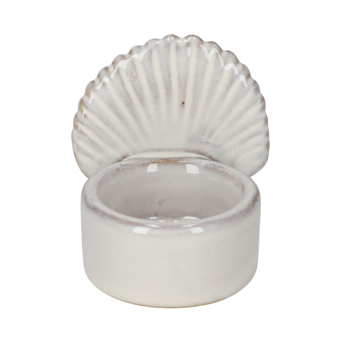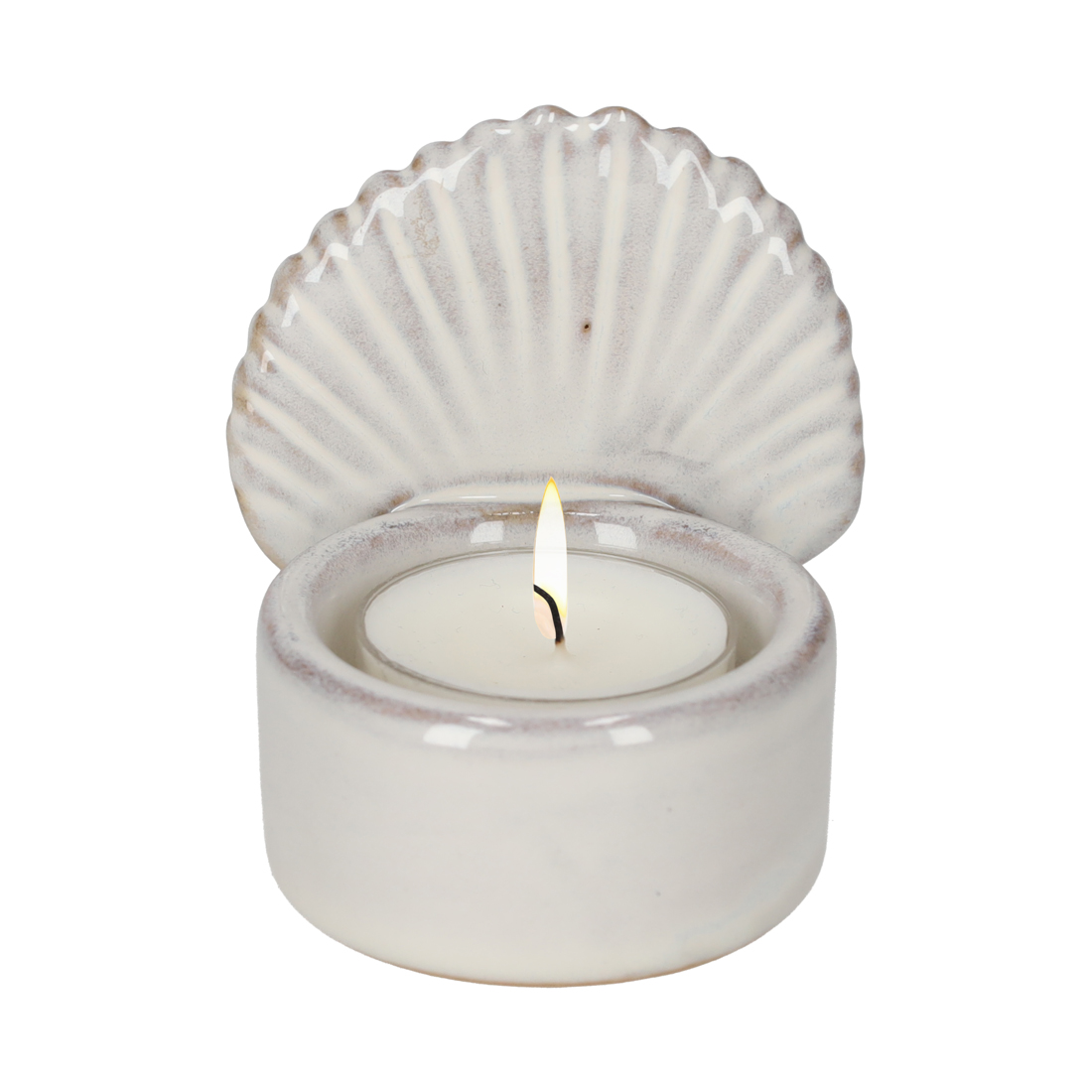 Met deze theelichthouder haal je de rustgevende sfeer van het strand in huis. De porseleinen houder heeft de vorm van een schelp en biedt ruimte voor een theelichtje.