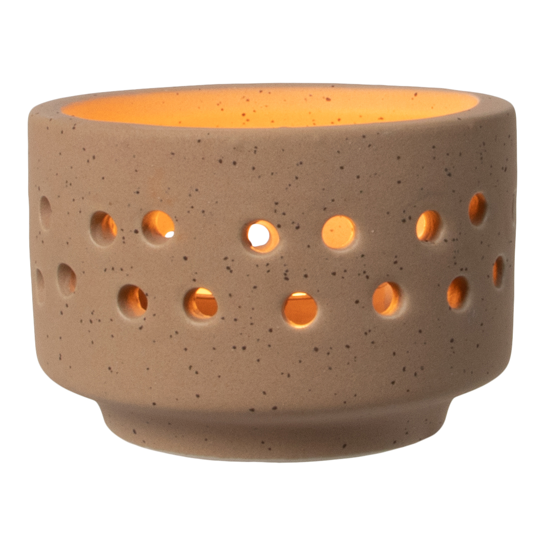Deze keramieken theelichthouder geeft een sfeervol effect door het originele design. Het kaarslicht wordt mooi verspreid door de aanwezigheid van de gaatjes. Deze theelichthouder past in ieder interieur en is daarmee een echte sfeermaker.