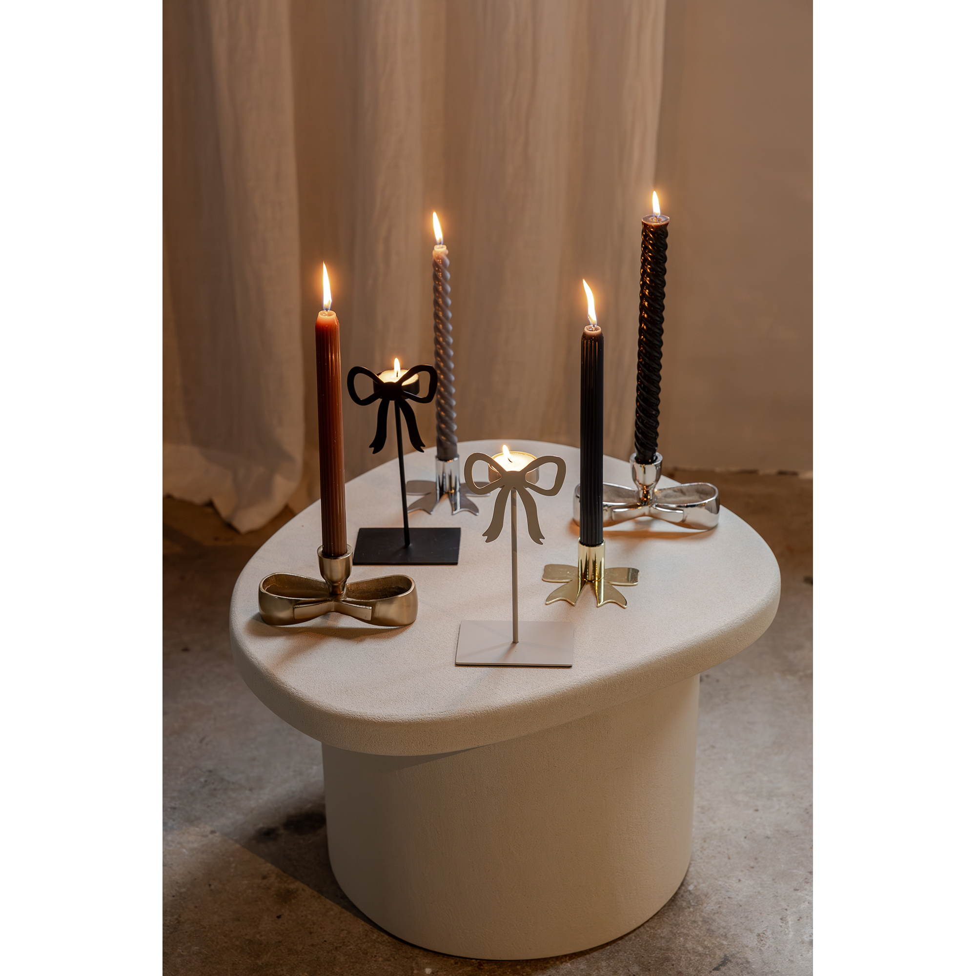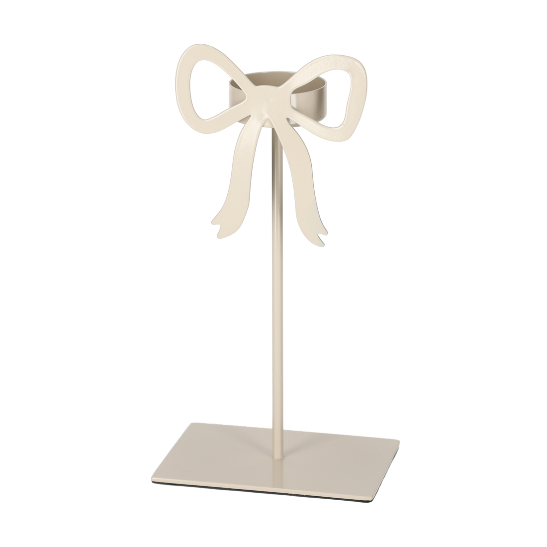 Deze ijzeren theelichthouder, afgewerkt met een decoratieve strik, is perfect voor ieder interieur. Dankzij de matte finish heeft de houder een moderne en stijlvolle uitstraling.