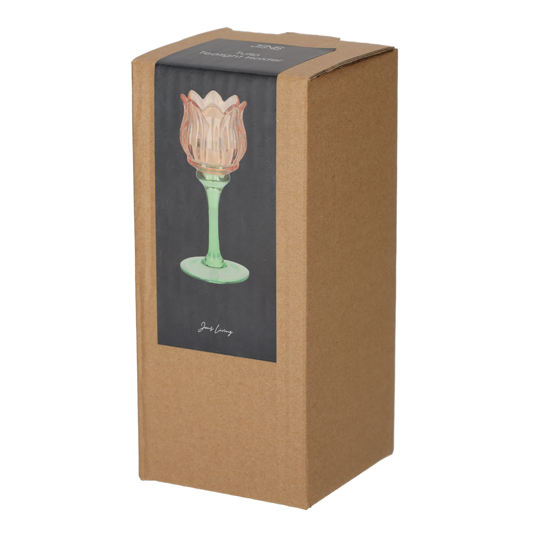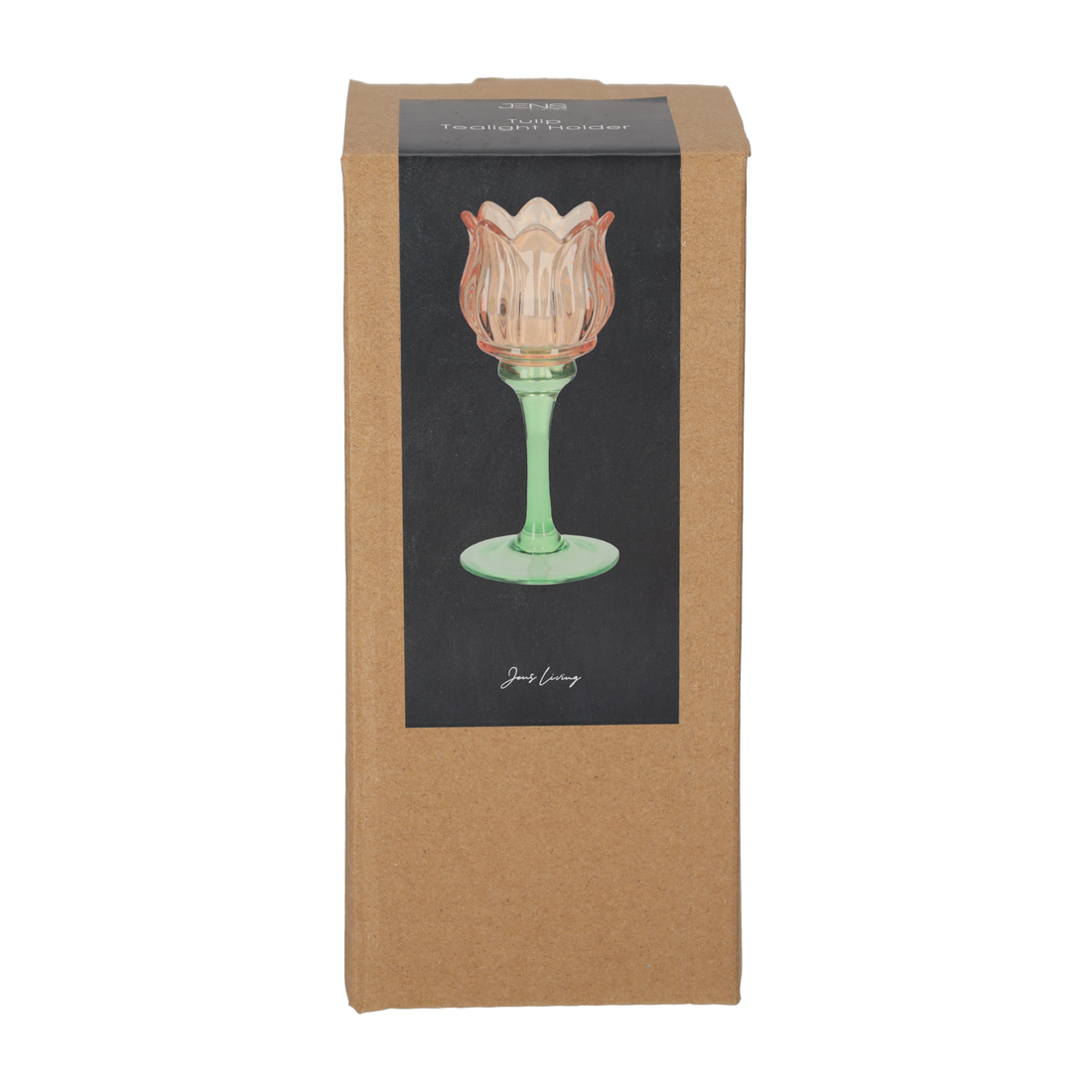 Breng je woonkamer in Hollandse sferen met deze theelichthouder in tulpvorm. Zet de glazen theelichthouder op de salontafel of combineer de verschillende kleuren uit deze serie voor een vrolijk verlicht bloemenlandschap. Perfect om je woonkamer op te fleuren!