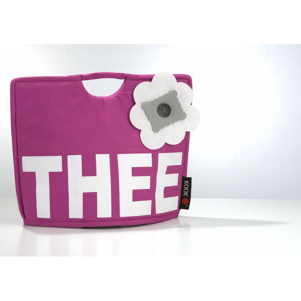 Rechthoekig vormgegeven theemuts van het merk KOOK. Ideaal om uw thee op leuke manier warm te houden! De theemuts heeft een grote opdruk met 'thee' en is afwerkt met vilten decoraties. Ook is er een handvat aan de bovenkant gemaakt zodat u de theemuts gemakkelijk op kunt tillen.