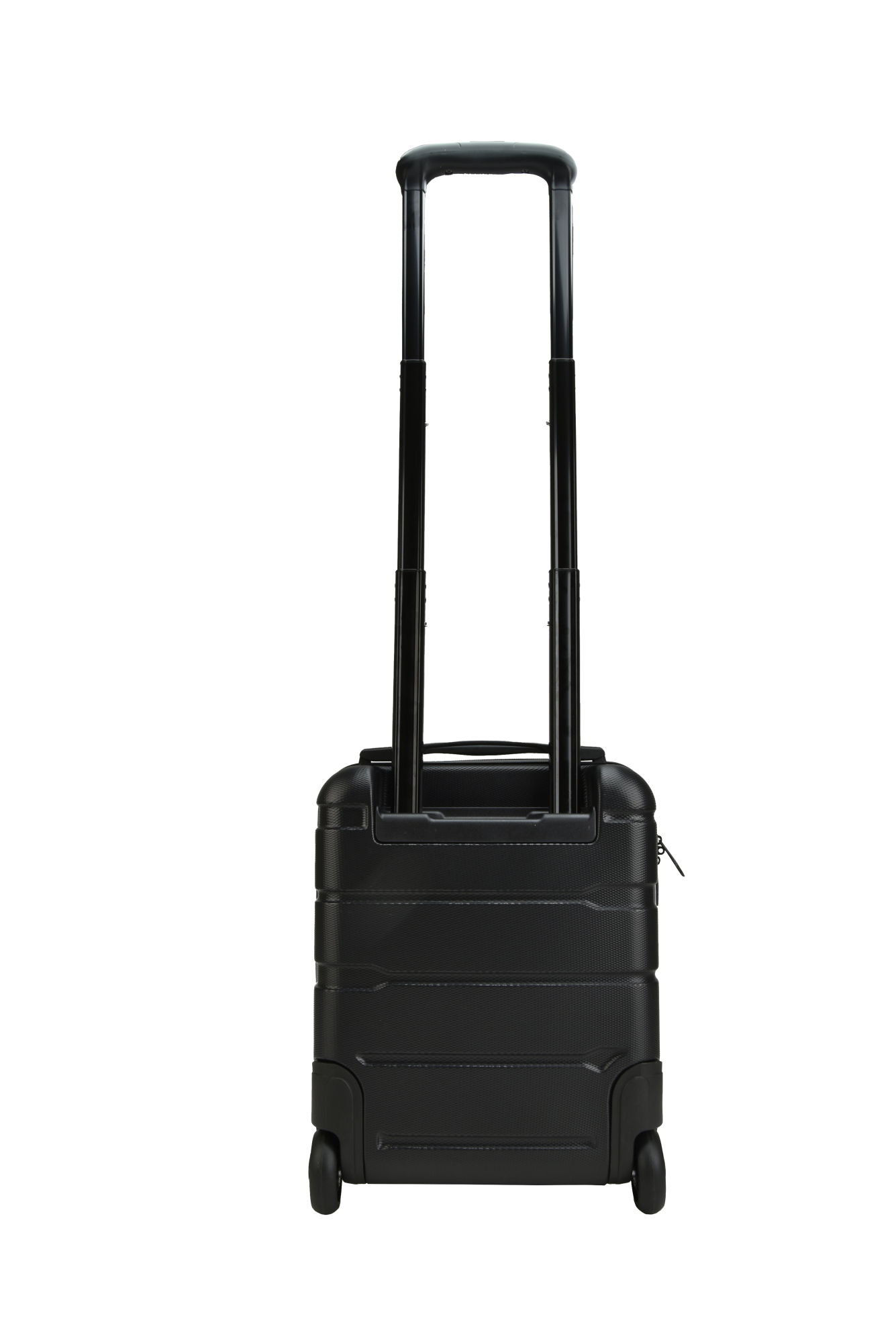 Deze compacte trolley is speciaal gemaakt om onder de stoel in het vliegtuig te passen. Hierdoor mag deze trolley mee als handbagage bij alle luchtvaartmaatschappijen. De trolley heeft een uitschuifbare stang en twee luxe soft wieltjes. De binnenzijde bestaat uit een hoofdcompartiment met buckles en een ritsvak.