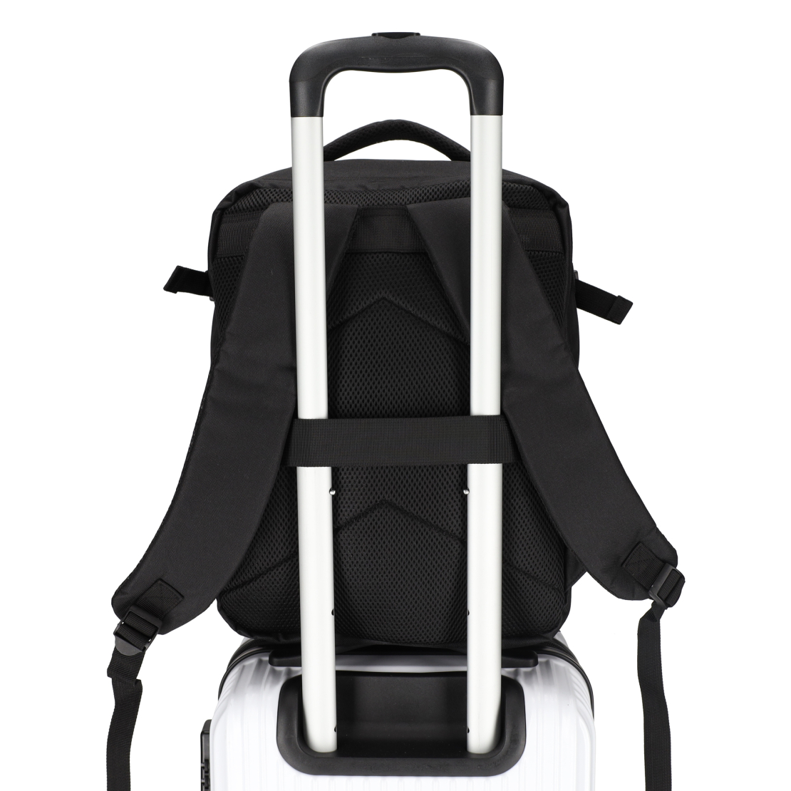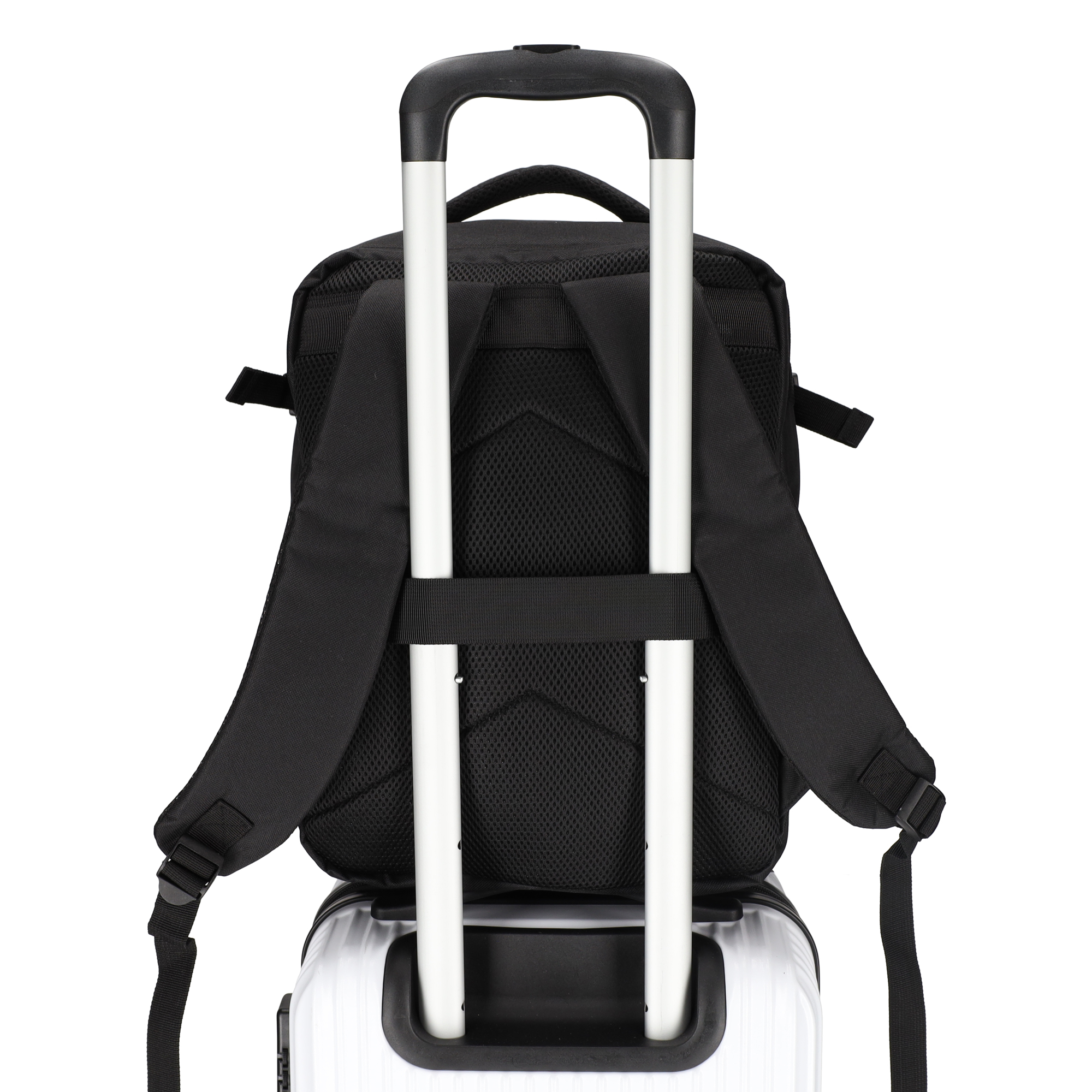 Deze duurzame rugtas is ontworpen om onder een vliegtuigstoel te passen en hoeft dus niet ingecheckt te worden. Het ruime hoofdvak is volledig open te ritsen. De vier verstelbare gespen zorgen ervoor dat de underseater compact blijft wanneer hij volledig is ingepakt. Het laptopvak aan de rugzijde met ritssluiting biedt ruimte voor laptops en tablets tot 15,6 inch. De voor- en achtervakken zijn ideaal voor het opbergen van reisbenodigdheden zoals een oplader of paspoort. Dankzij de foampadding op de rug is de tas comfortabel te dragen, of schuif de underseater over een trolleystang met de handige trolleyband!