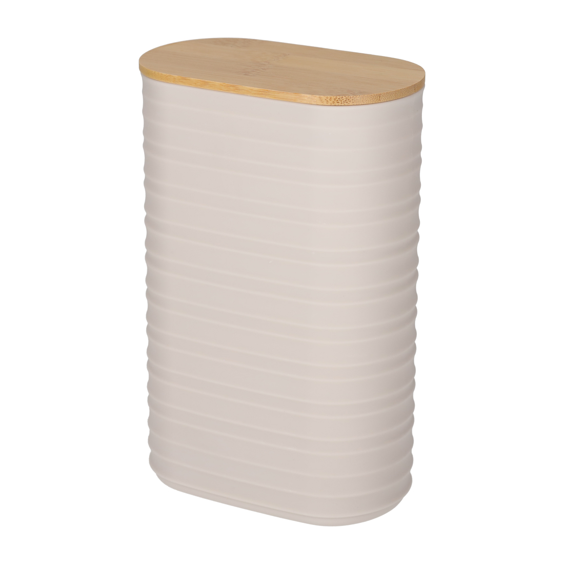 Deze voorraadpot is ideaal voor het bewaren van pasta, rijst, noten of snoepjes. De speelse ribbelstructuur geeft de pot een unieke uitstraling en voegt karakter toe aan je interieur. Met een royale inhoud van 1600 ml biedt hij voldoende ruimte voor al je favoriete ingrediënten of snacks. Dankzij de rechthoekige vorm is de pot zowel praktisch in gebruik als ruimtebesparend. De bamboe deksel met siliconen sluiting garandeert een luchtdichte afsluiting en houdt de inhoud langer vers.