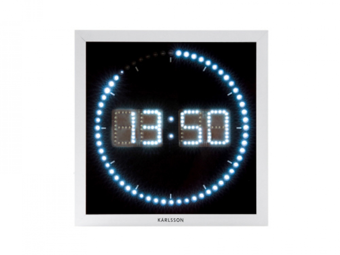 Deze Karlsson klok is een futuristische wandklok met de tijd en datum door middel van led verlichting weergegeven. De seconden tikken rondom de tijdsweergave. Een bijzonder design!