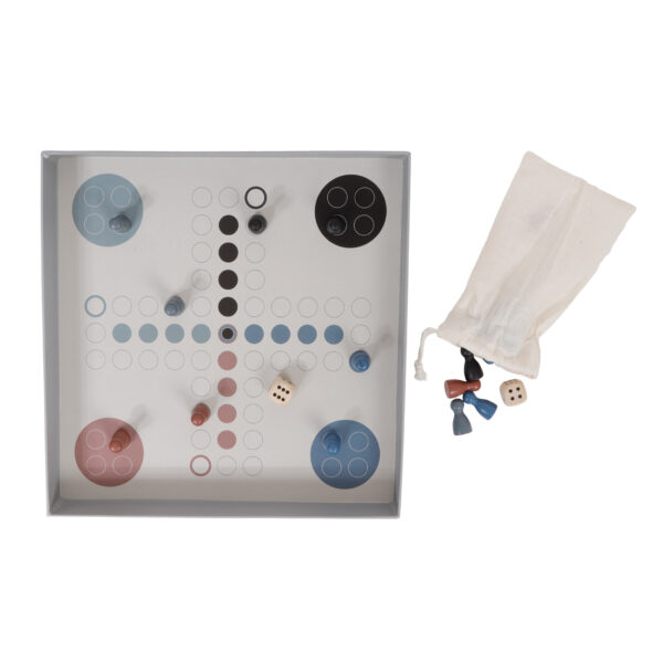Is het geluk aan je zijde en halen jouw pionnen als eerste de thuisbasis? Dan ben jij de winnaar van dit leuke familiespel “Winning Moves”. Het spel kan met maximaal 4 personen gespeeld worden. De spelstenen worden geleverd in een handig opbergzakje en de binnenkant van de doos dient als spelbord gebruikt te worden.